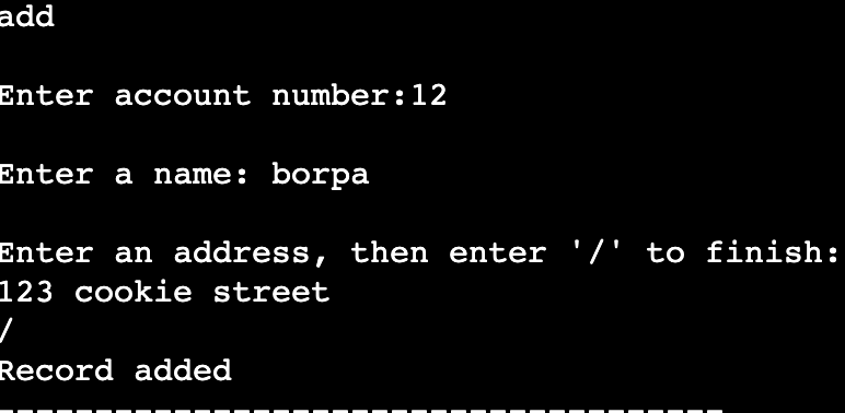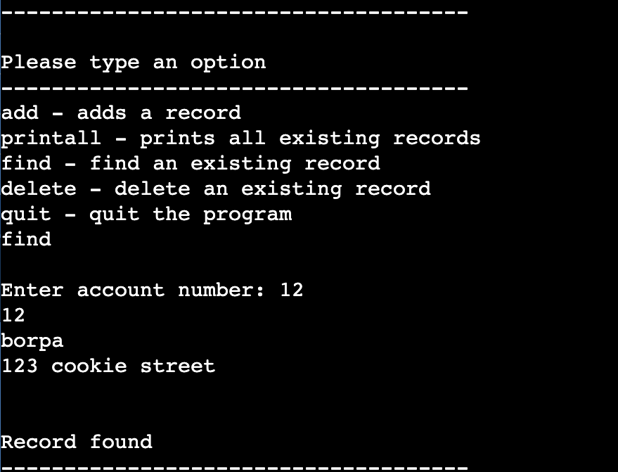 This project was slowly implemented over time throughout the semester, in which we implemented each method at a time, slowly building this project as a whole. I’ll give a small preview on the database working.